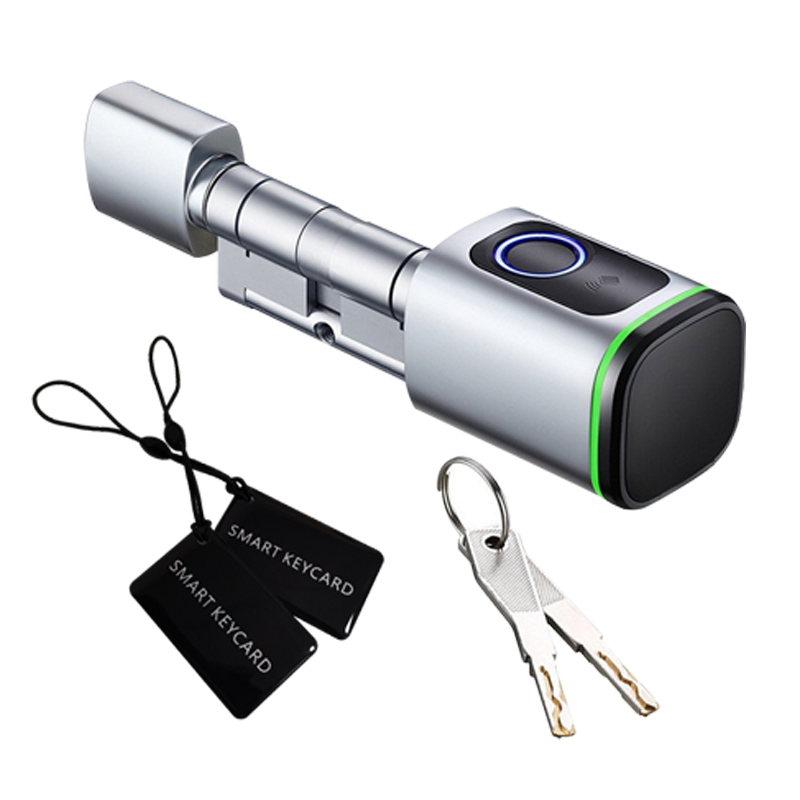 The Tuya Bluetooth Smart Lock Cylinder is designed to replace traditional door cylinders, offering enhanced security and convenience. It supports multiple access methods, including fingerprint recognition and 13.56MHz Mifare cards, accommodating up to 100 fingerprints and 100 cards. The lock features a USB port for emergency power, ensuring reliable operation even during power outages.